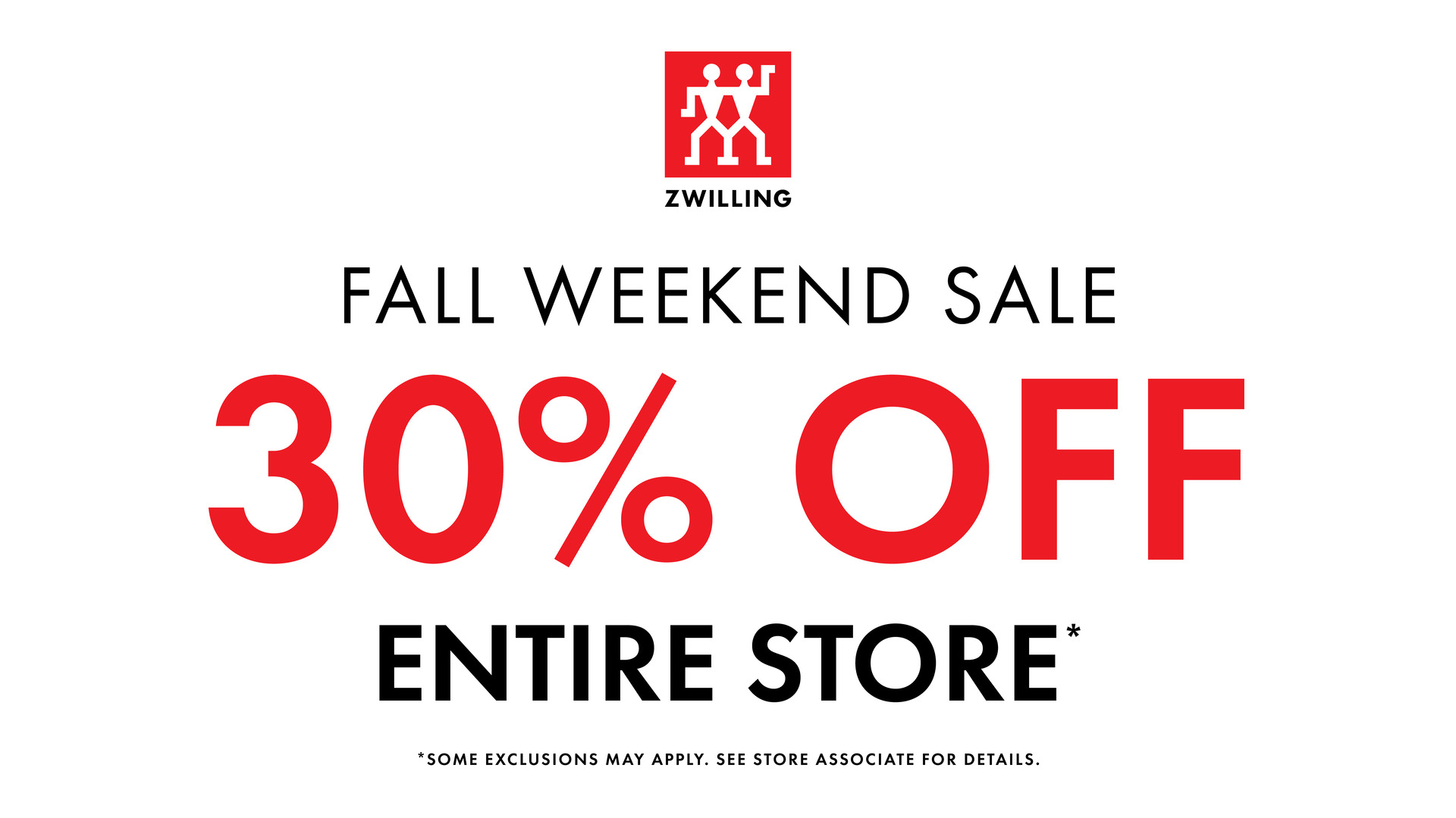 *Save 30% storewide offer valid October 10-13, 2025. Offer may not be combined with any other coupons, discounts, or offers. Offer not valid on prior purchases, special orders, gift cards or taxes. Promotion only available in our ZWILLING Retail and Factory Stores located in the United States. Some exclusions may apply. See store associate for details.
