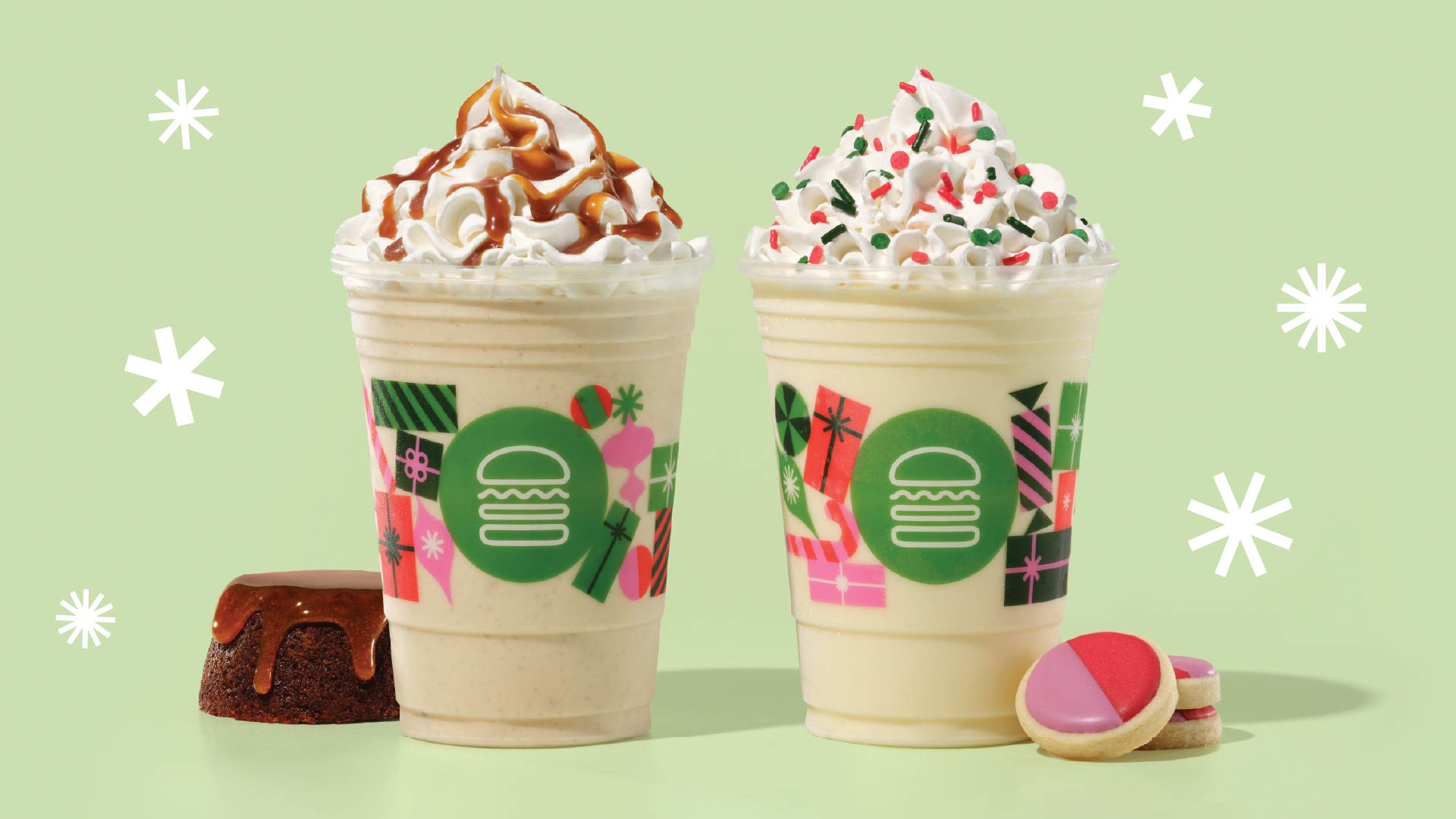 Christmas Cookie Shake ($6.99) – Sugar cookie frozen custard topped with whipped cream & holiday sprinkles.