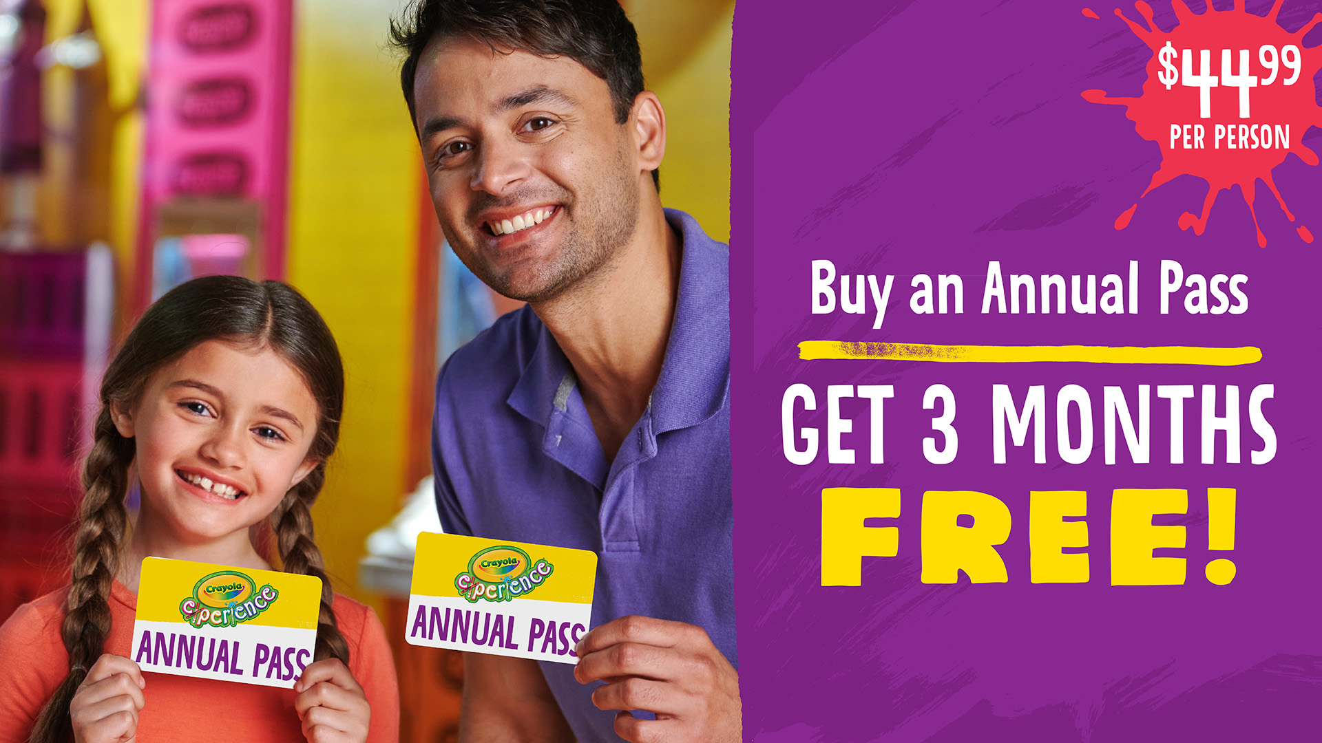 LIMITED TIME ONLY: Get 3 months FREE with any Annual Pass purchase, now through May 17. That’s 15 months of colorful hands-on fun for only $44.99 per person!