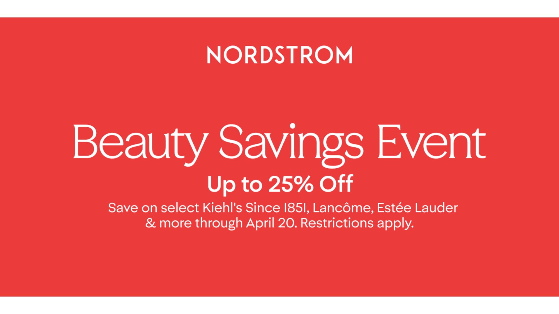 Save on select Kiehl's Since 1851, Lancôme, Estée Lauder & more through April 20. Restrictions apply.