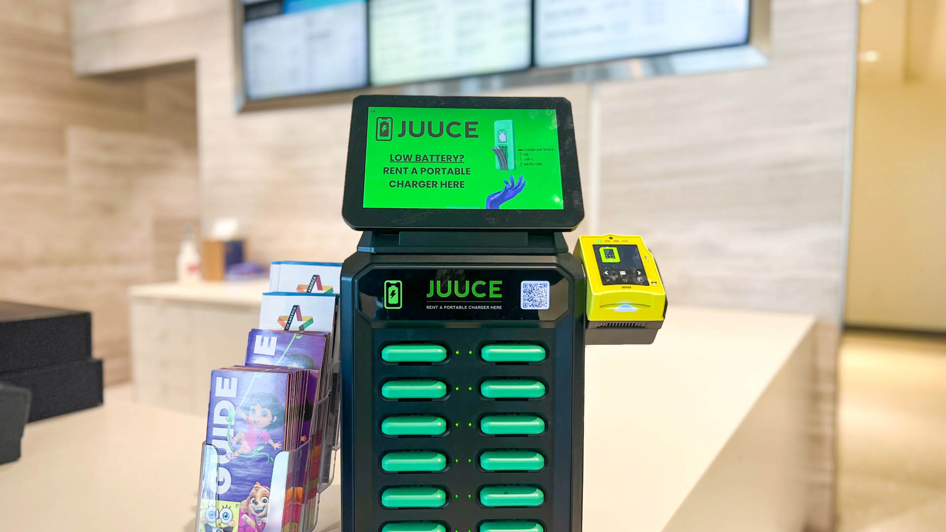 JUUCE offers a convenient solution to keep your portable devices charged while you shop. Through strategically placed rental kiosks throughout Mall of America®, you can easily find and rent a portable charger to power up your device on-the-go.