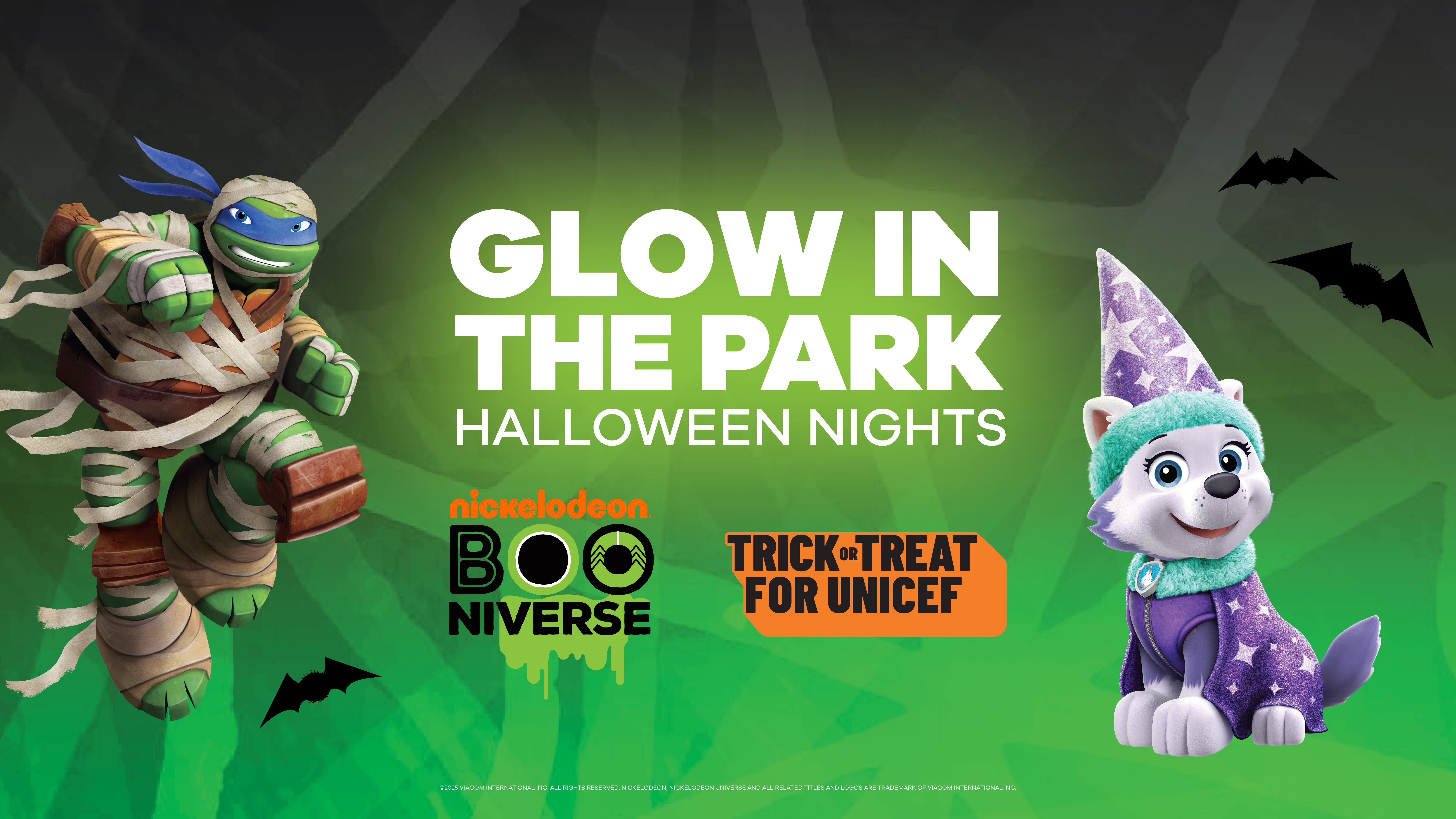 Looking for a wicked good time? Glow totally crazy at Nickelodeon Universe® Glow in the Park Halloween Nights on Friday, October 24 and Saturday, October 25! So much frightful glow-in-the-dark fun awaits, like DIY Slime, hairdo and coloring stations — all glowing eerily as you do a diabolical dance at our ghoulish DJ get-down party! Plus, pick up a treat bag at the North Entrance and if you’re an Annual Passholder, you’ll receive an extra special goody in yours!