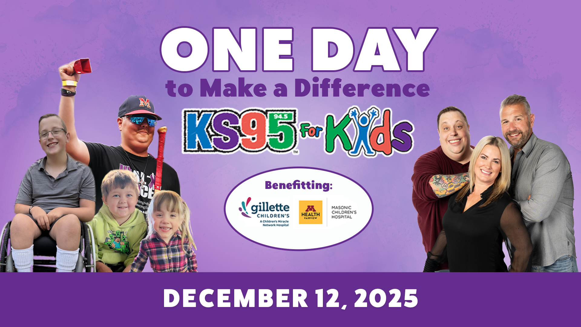 The KS95 for Kids Radiothon is an annual on-air fundraiser benefiting two local charities, Gillette Children’s and M Health Fairview Masonic Children’s Hospital Cancer Program. Celebrating its 27th Anniversary this year, KS95 for Kids has raised over $21 million since its start. We look forward to continuing to make an impact with your support. Visit ks95.com for more details.