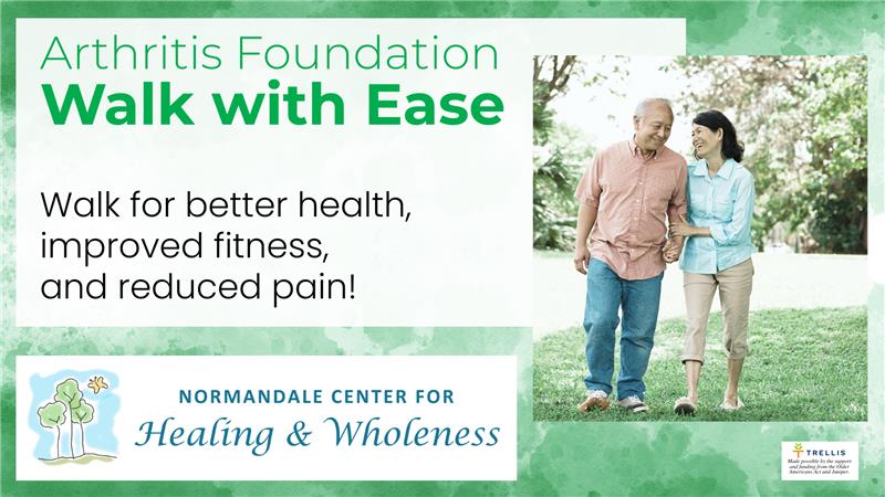 Join us for Walk With Ease, an evidence-based program developed by the Arthritis Foundation in partnership with the Centers for Disease Control and Prevention that helps you create a routine to stay active and healthy. You'll learn a safe, relaxing and enjoyable way to make walking part of your everyday life.