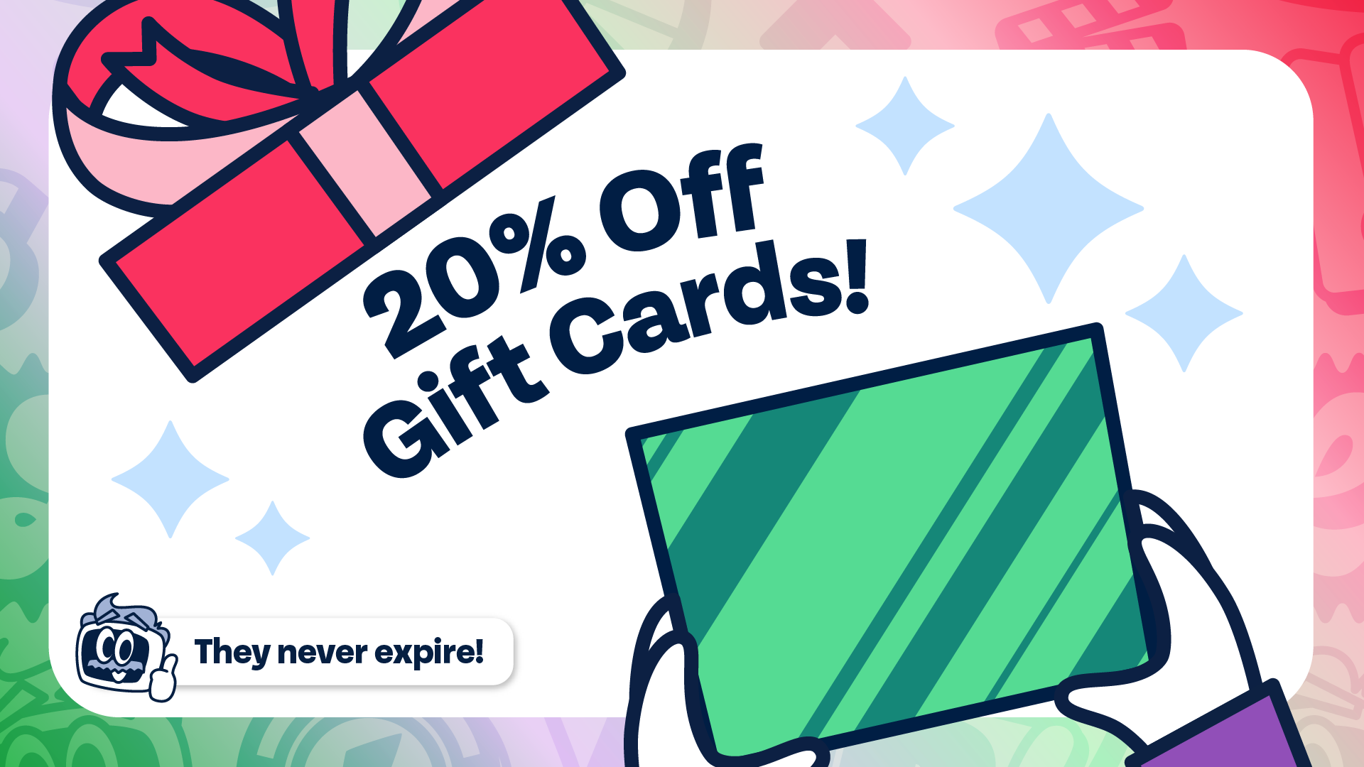 THE holiday sale you can't miss! Save 20% OFF single-player gift cards from November 28th to December 31st!