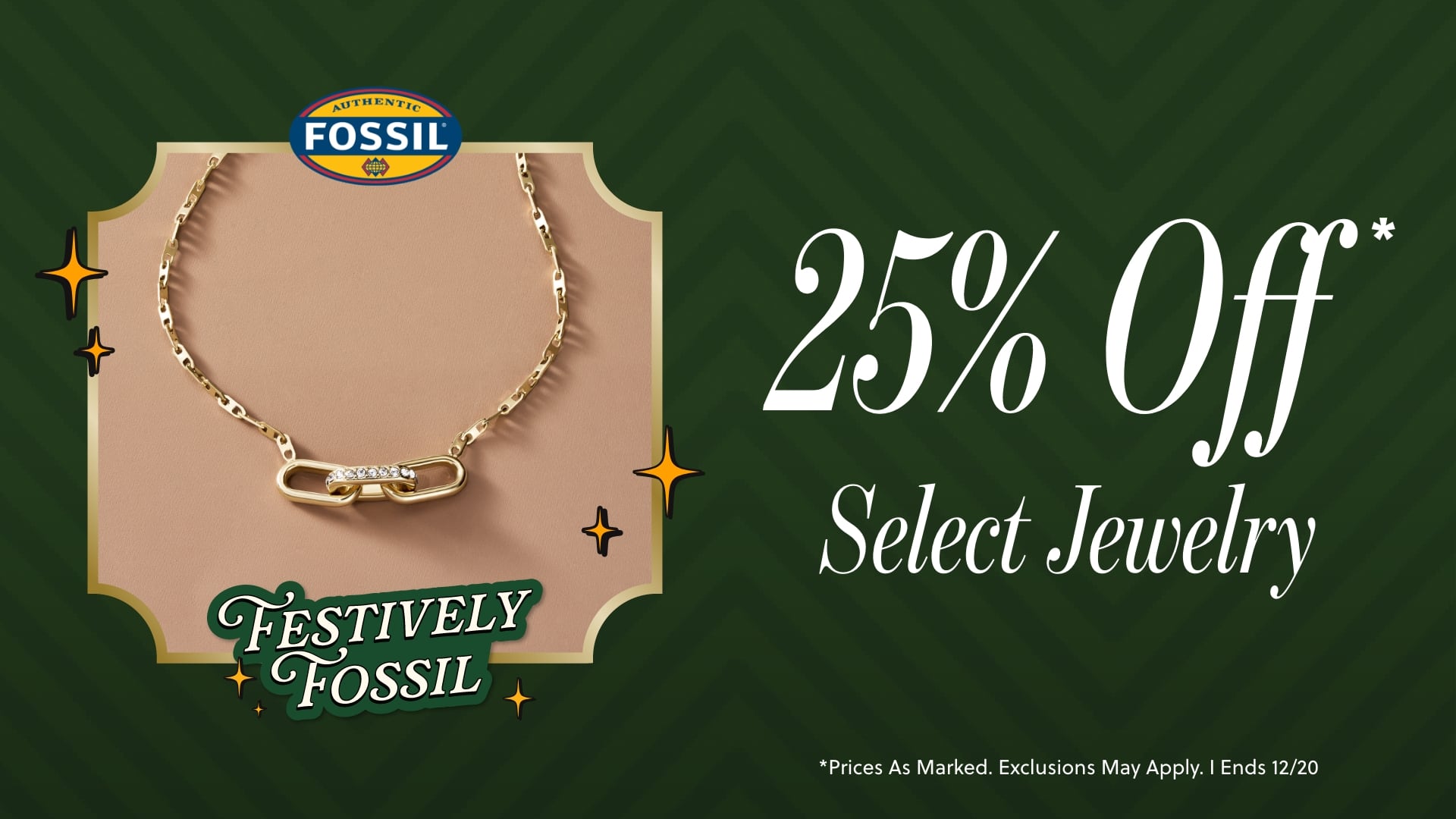 Everyone's wishlist? Jewelry to light up the holidays. Save 25% on select styles for one week only. Shop now at Fossil. On*Prices As Marked. Exclusions May Apply. I Ends 12/21