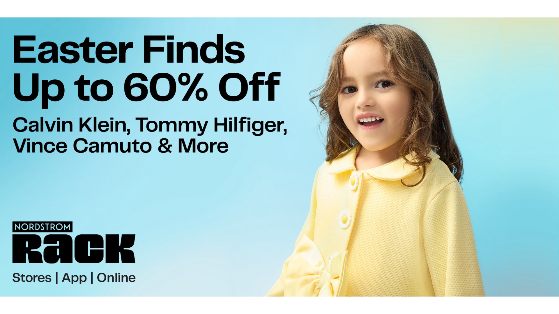 Easter finds for the fam up to 60% off are in store at Nordstrom Rack now. Shop can’t-miss deals and gifts from brands they love, like Calvin Klein, Tommy Hilfiger, Vince Camuto and more.