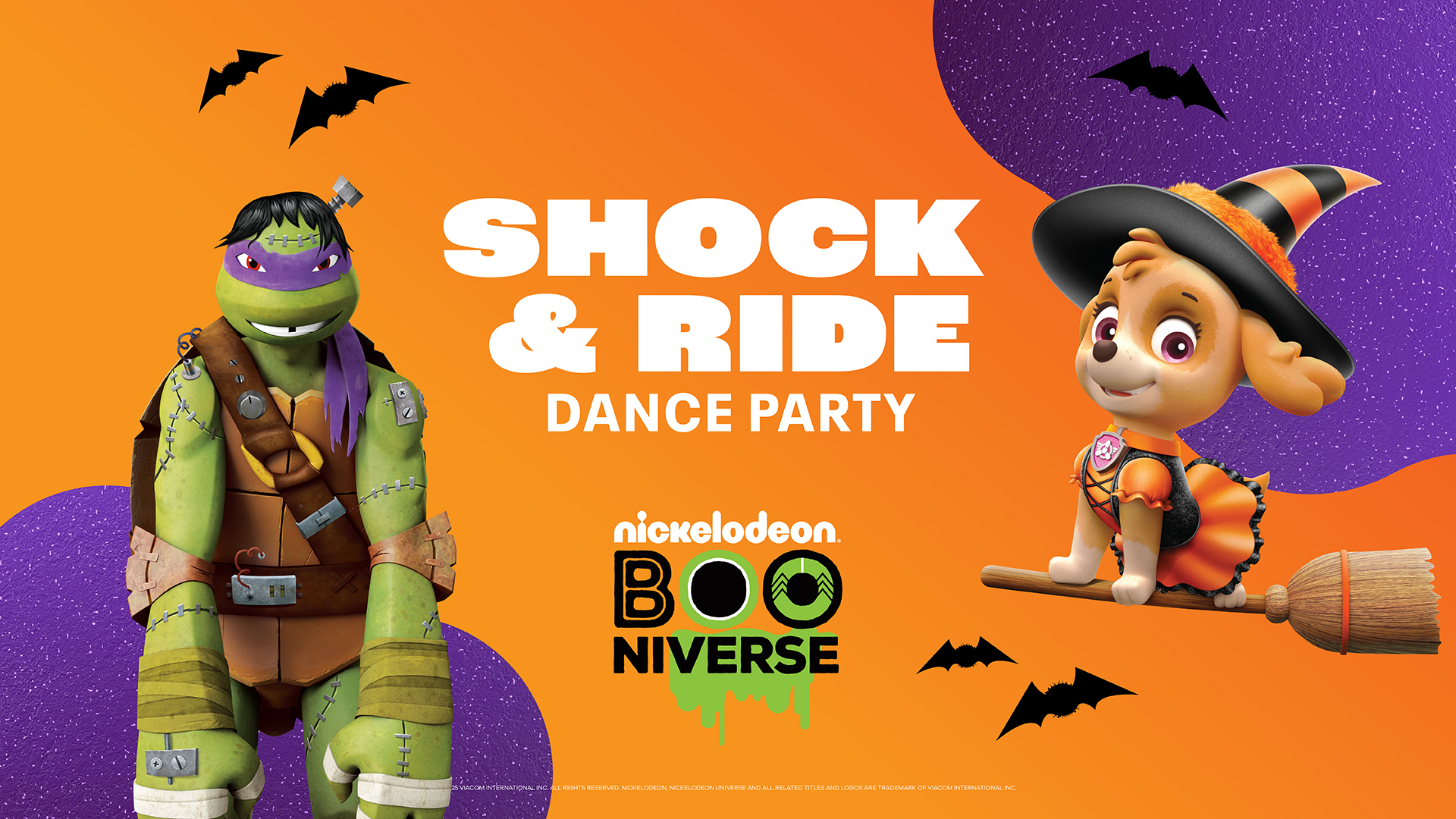 Join Team Nick for the ultimate Halloween dance party! Groove to your favorite spooky jams, show off your best monster moves, and cap off the night with the Fright Lights Spooktacular — a dazzling Halloween light show that will transform Nickelodeon Universe into a glowing wonderland!