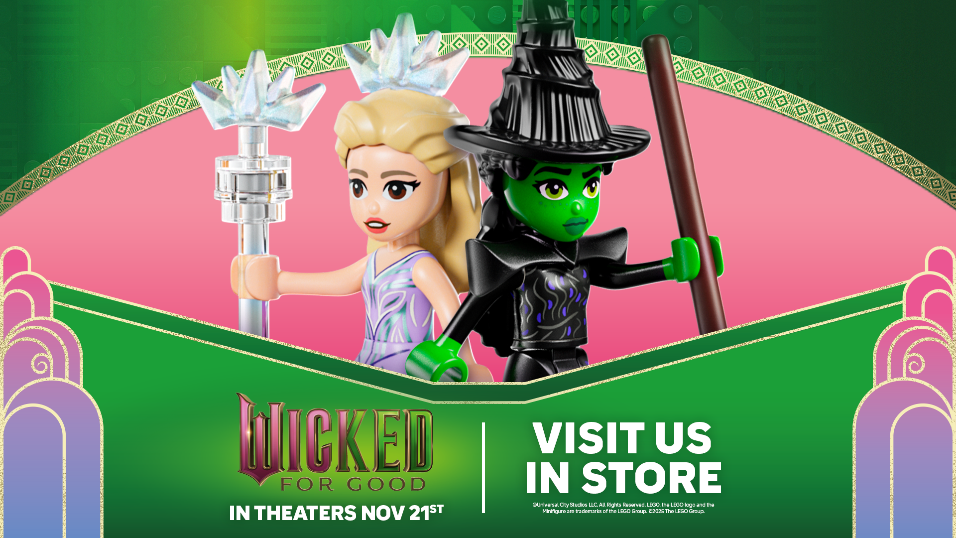 Visit the LEGO Store at Mall of America from November 13th through November 16th to celebrate the release of Wicked: For Good by building a themed mural out of LEGO bricks! While supplies last.