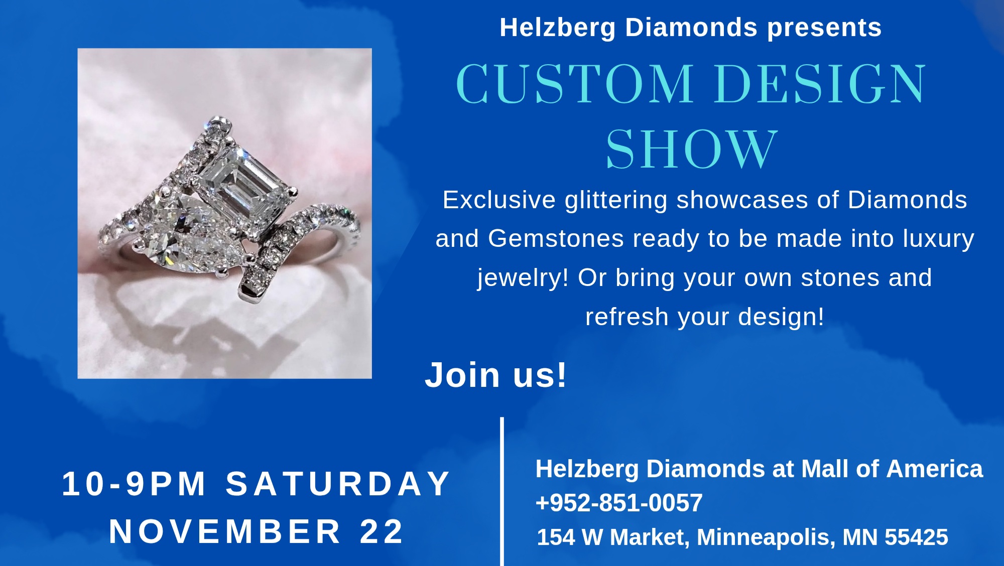 Join us for the Helzberg Diamonds Custom Design Show featuring exclusive designs by Dana Augustine!