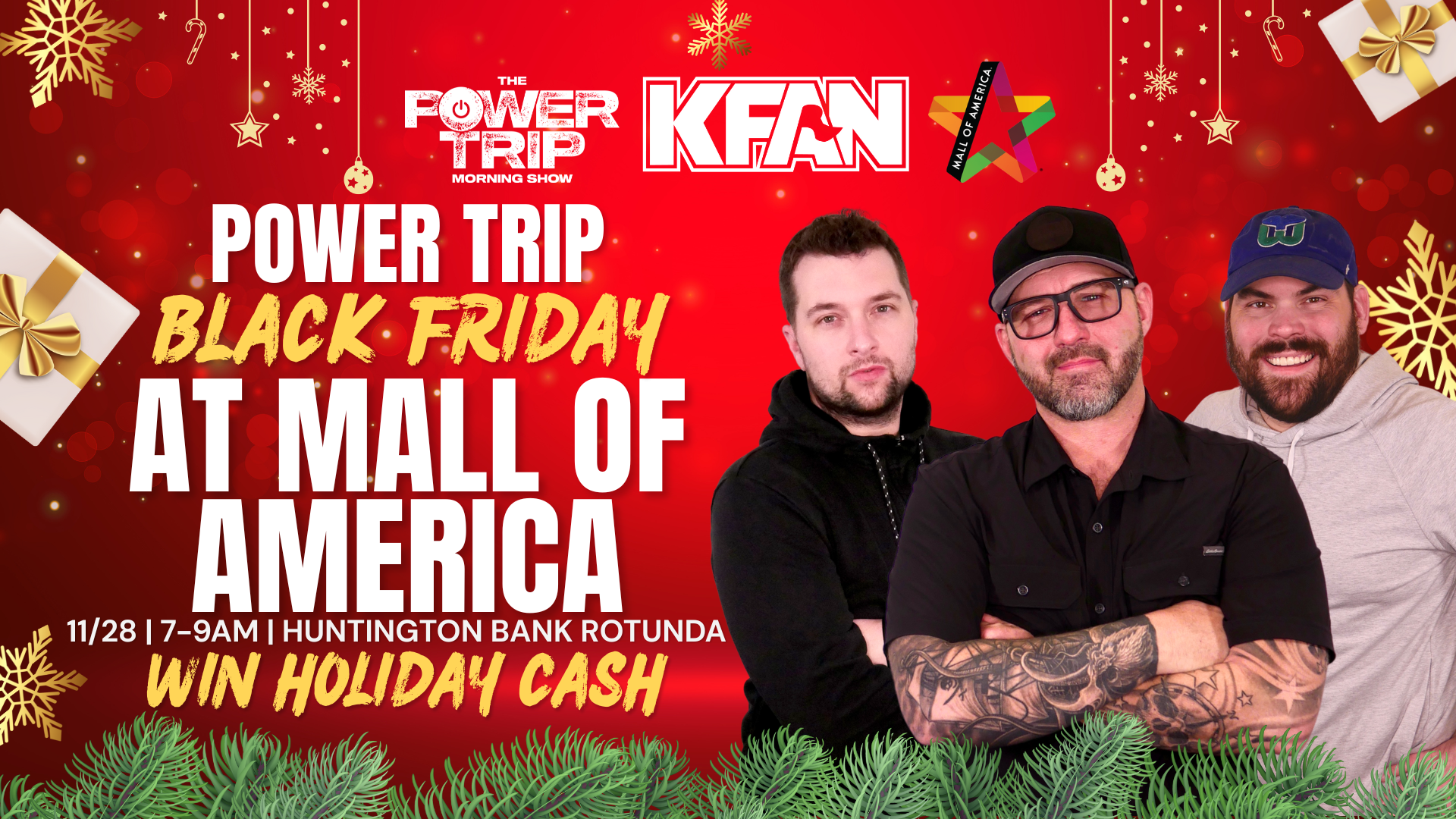 It’s the Black Friday tradition you don’t want to miss! The KFAN Power Trip Morning Show is LIVE at Mall of America—bringing the Initials Game, tons of laughs, and your chance to score serious holiday cash! Come celebrate the 24th Anniversary of the show with the guys! Note, the initials game will start around 8:15 a.m. You won't want to miss this!
