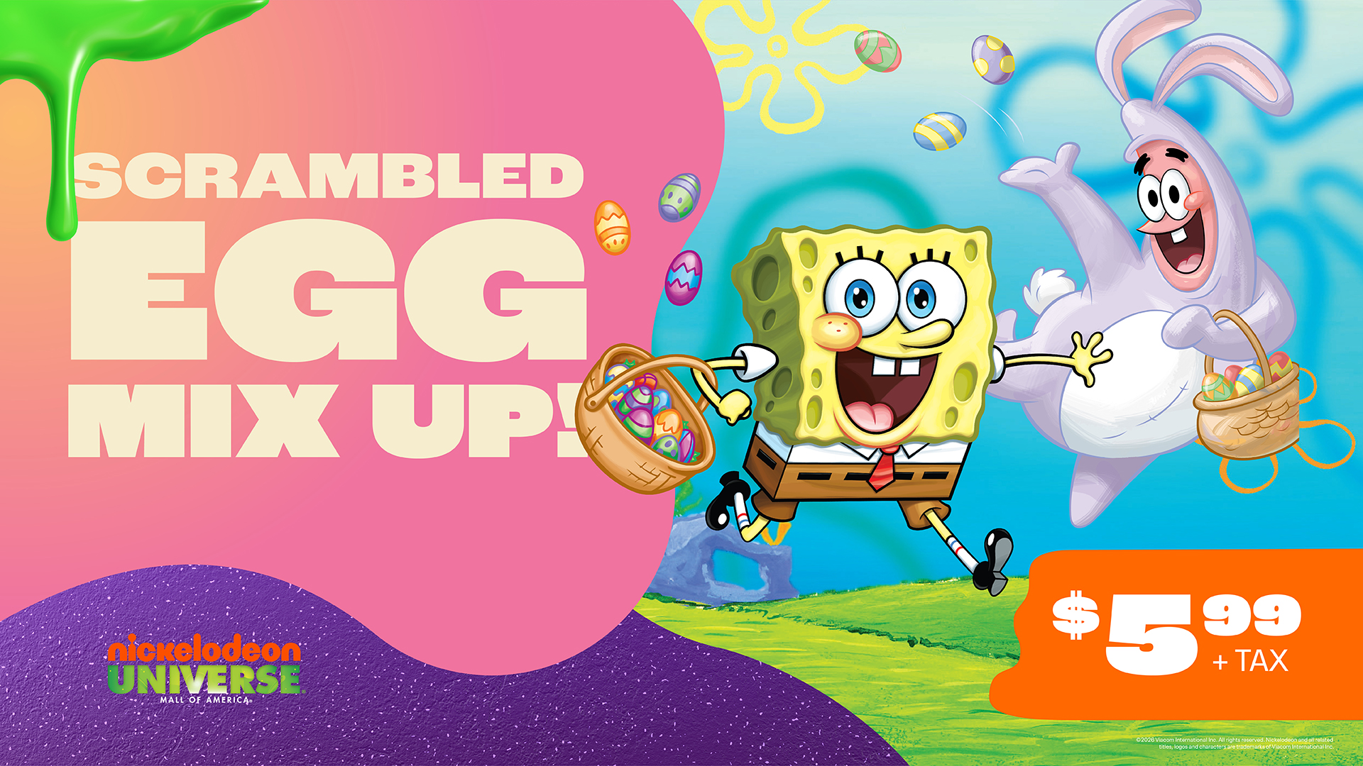 There are six decorated eggs hidden around Nickelodeon Universe. Can you identify which show is featured on each of them? Add a Scrambled Egg Mix Up Scavenger Hunt onto any ticket purchase now through April 12 to unscramble the eggs and get a prize.