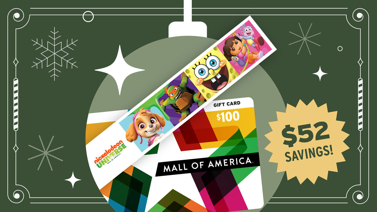 We’ve got your last-minute shopping covered with our Holiday Shop & Ride combo. Receive a free Nickelodeon Universe® Unlimited Ride Wristband, when you purchase a $100 MOA® Gift Card, that’s a $52 savings!
